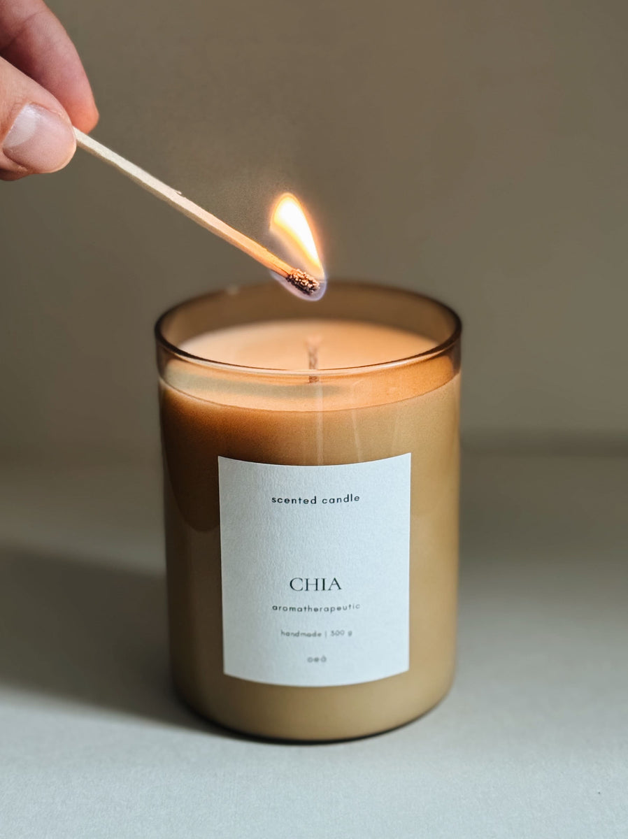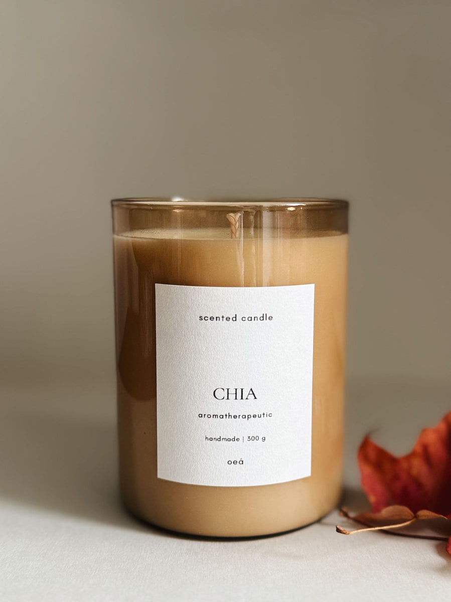The CHIA Scented Candle is hand-poured using high-quality, plant-based wax and natural essential oils. The clear glass lets the candlelight shine beautifully – perfect for cozy, quiet moments.