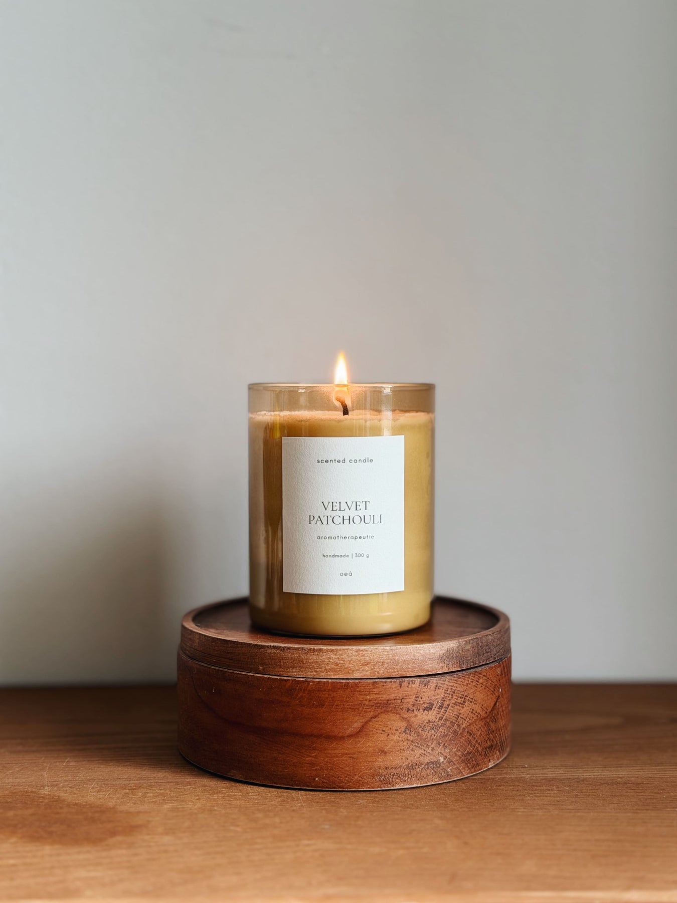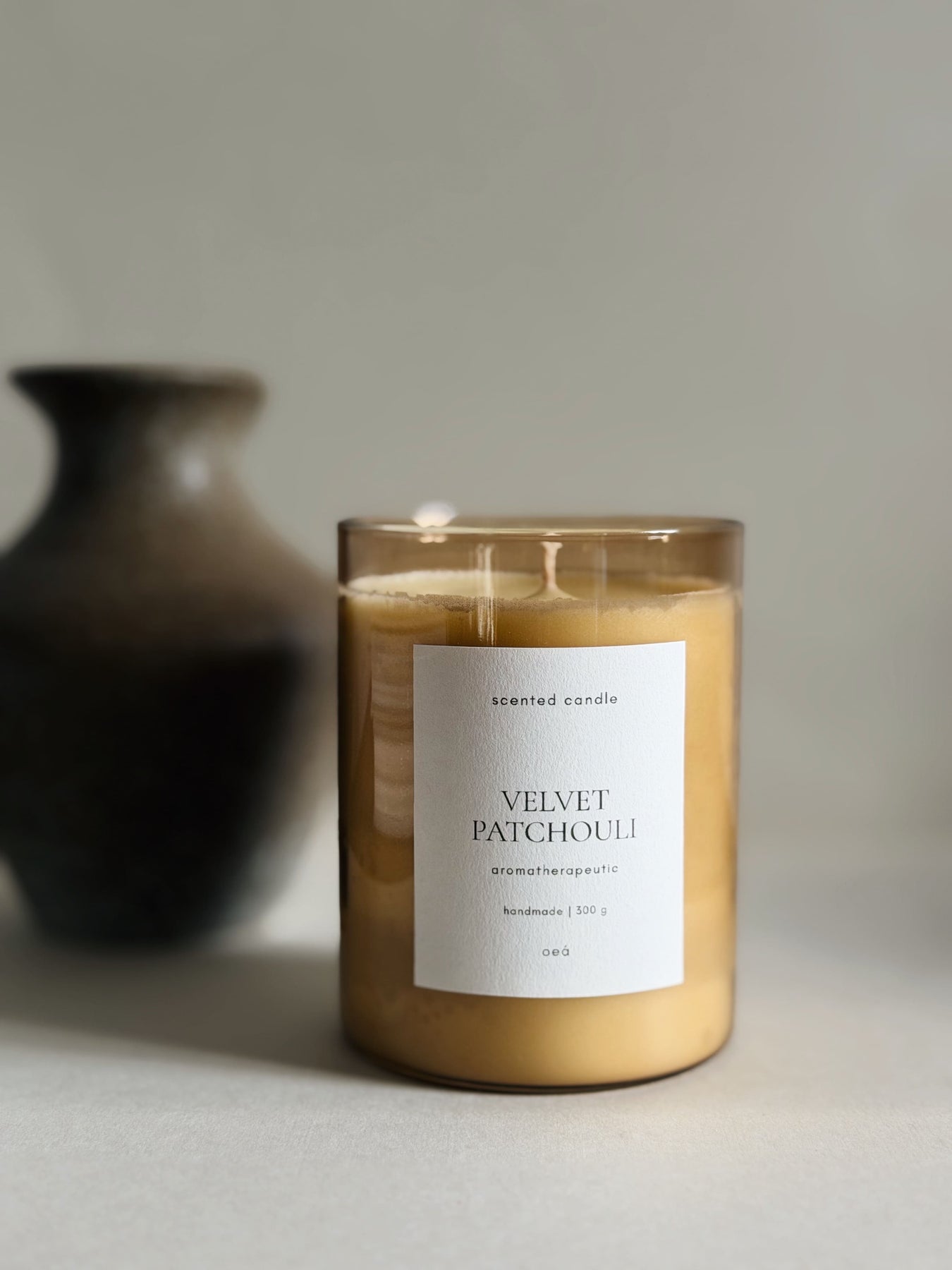 Velvet Patchouli is the candle for your moments of slowing down. Inspired by the depth and warmth of natural essential oils, it unfolds into a complex scent: calming lavender meets earthy, subtly smoky patchouli, refined by the fresh clarity of citrus fruits.